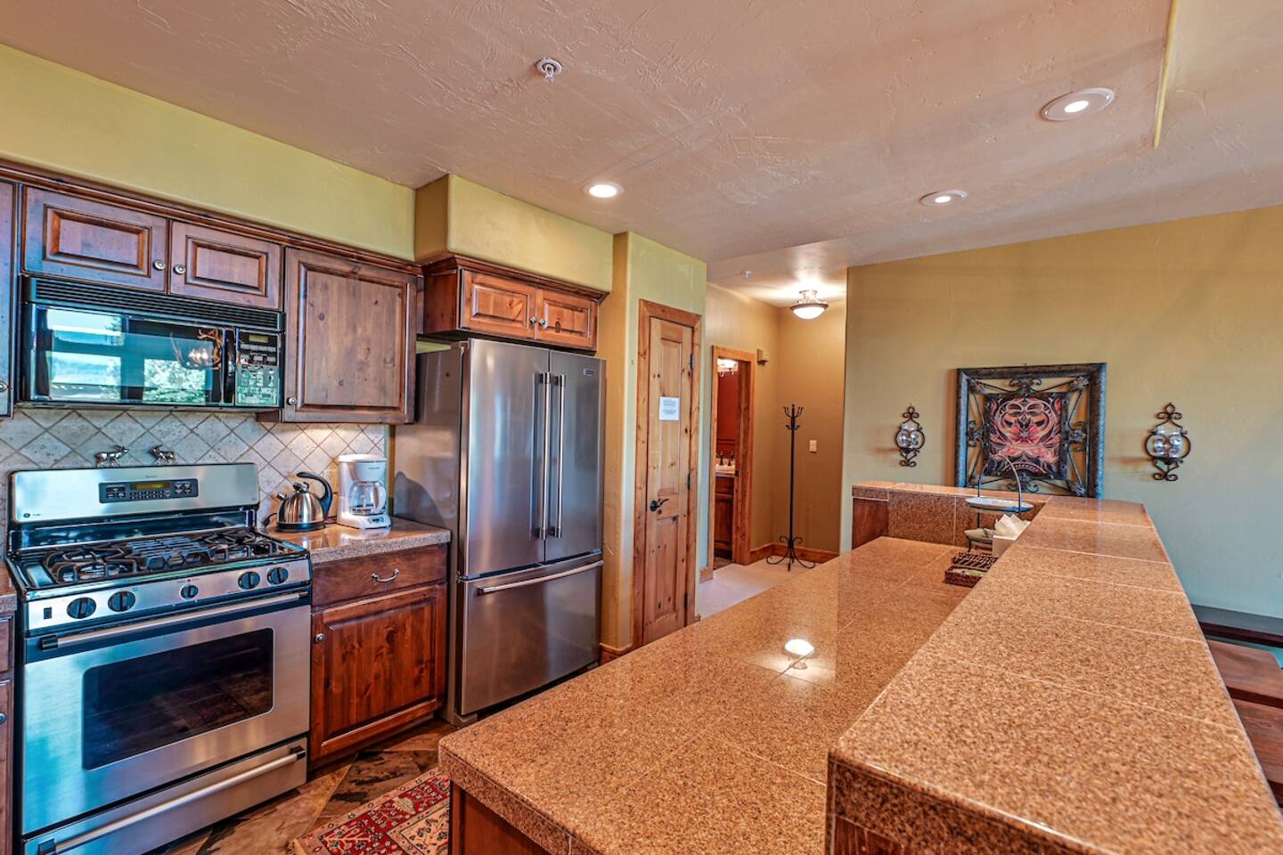 There is a king bed in the master on the third floor, which has a full bathroom with garden tub and shower as well as a huge walk-in closet. There is also a twin day bed for a little one, an office area, and a private balcony. Also on the third floor is another bedroom with a queen bed with a full bathroom. The middle floor has a large kitchen, dining area, half bath, and ample living room along with a bedroom with 2 double beds and a full bath. This condo has a large open floor plan that makes it great for entertaining. The kitchen has everything you could need to whip up a memorable meal. The dining room table seats 8 + and there are 4 bar stools as well. Come relax on the comfortable overstuffed furniture and take in the AMAZING view, or perhaps sit on the private balcony and celebrate another wonderful day of adventures The entry level features a TV room with large, comfy couch and also has a full bathroom. This is a great place for the entire family to gather after a long day of activities There is a large community hot tub and a private grill, as well as a 2 car heated garage with room for one more car in the driveway for a total of 3. Treasury Point is set-up for families, so leave your bulky kid items at home. We have a pack n play, booster seat, some toys for toddlers and a collapsible play pen Enjoy the free summer outdoor concert series in the base area. It is a short walk for kids of all ages to the base in the summer for the excellent biking, hiking, zip-lining, disc-golf, putt putt golf and panning for gemstones Maybe skiing isn't your thing or you want to pamper yourself a bit. Well, within walking distance from the condo is the Elevation Spa, which features a day pass for $25 or $50 for the week and includes a hot tub, indoor pool, fitness center, and 3 tranquility rooms STR License # 306162 For Emergency Contact/Local Representative contact information, go to the Town of Mt Crested Butte website and navigate to the Short-Term Rental page.