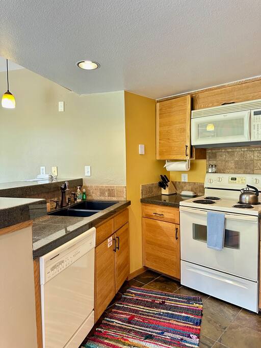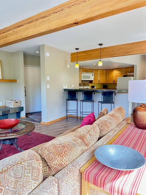 The inviting living room provides breathtaking views from the couch and the wrap-around balcony. With plenty of seating, including a large comfy sofa, you'll have ample space to relax. Enjoy the large flatscreen Smart TV and cozy up by the wood-burning fireplace, stocked with plenty of wood to keep you warm as you take in the slope views. The bright dining area comfortably seats six, and there are three bar stools at the kitchen island. The fully equipped, open kitchen has all the essentials to meet your culinary needs. The master bedroom features a luxurious king bed with a private balcony overlooking the slopes, a large screen TV, and an ensuite bathroom with a tub and shower combination. Imagine waking up to the sight of the slopes from the comfort of your bed. The versatile second bedroom can be configured as two twin beds or a king bed, depending on your preference. A bed bridge and appropriate bedding are available for whichever combination you choose. The room is typically set up as a king, but please let us know in your booking inquiry if you would prefer twins. This room also includes a large flat-screen TV, with a full bath across the hall featuring a tub and shower combination. We have a queen blowup mattress and bedding available for 2 extra guests (total of 6) that could be set up in the living room. Additional amenities include a full-size stackable washer and dryer and Wi-Fi throughout the condo. This single-level condo is easily accessible via the elevator located in the parking garage. Just steps from your front door, you'll find a communal hot tub, sauna, grill, and table for outdoor dining and relaxation. The FREE Mountain Express Shuttle offers year-round transportation to and from the town of Crested Butte and surrounding areas. Gateway Condos is a short walk from the main transit center, with the shuttle running every 20 minutes during the summer, every 15 minutes in the winter, and every 40 minutes during the shoulder seasons. Upon arrival, you’ll find all linens, towels, and paper goods provided, including paper towels, bathroom tissue, facial tissues, trash bags, kitchen towels, an assortment of spices, a dish sponge, dish soap, dish detergent, and laundry detergent. The condo is equipped with a regular drip coffee maker. Each unit is allocated one parking spot in the garage. Experience the perfect blend of adventure and relaxation at our charming condo in Mt. Crested Butte! Amenities: Ski-in/ski-out access via elevator Top-floor condo with panoramic views Wrap-around balcony Private balcony off master bedroom Large flatscreen Smart TV and TVs in each bedroom Gas burning as of Jan 2025 Dining area seating for 6 Versatile second bedroom (2 twins or king configuration) Full-size stackable washer and dryer Wi-Fi throughout the condo Communal hot tub, sauna, grill, and outdoor dining area All linens, towels, and paper goods provided Regular drip coffee maker 1 parking spot in the garage Please note: This building has a an elevator, but there are 6 stairs from the elevator to reach the condo The wood burning fireplace will be replaced with a gas fireplace in Jan of 2025 There is no sleeper sofa in this condo but our rental license allows for 6 guests and there is a queen blow up mattress and bedding for the living room. Mt Crested Butte Sales Tax License # 303556 For emergency contact/Local Representative contact information, go to the Town of Mt. Crested Butte website and navigate to the Short-Term Rental page.